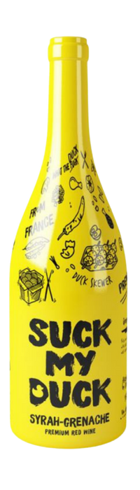 O vinho tinto Suck My Duck da Vignobles Vellas é um blend de Syrah, Grenache e Mourvèdre da região de Languedoc, França, com 14,5% de álcool, corpo médio a encorpado, notas de frutas vermelhas e negras, taninos suaves e final sedoso, ideal para harmonizar com carnes grelhadas (especialmente pato) e queijos curados, servido em torno de 16-17°C.